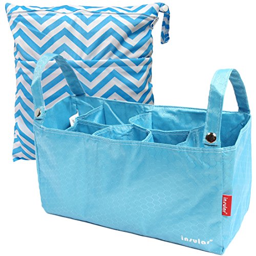 KF Baby Diaper Bag Insert Stroller Organizer, Blue + Wet Dry Bag Value Combo