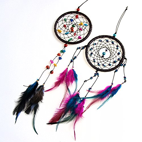 ZEJEUER 2PCS Handmade Dream Catcher Set For Girls With Colorful Feathers