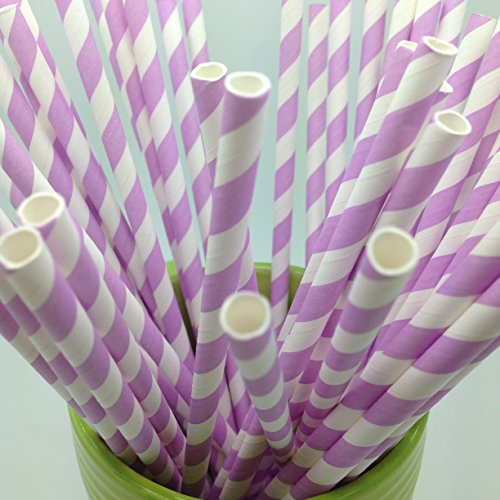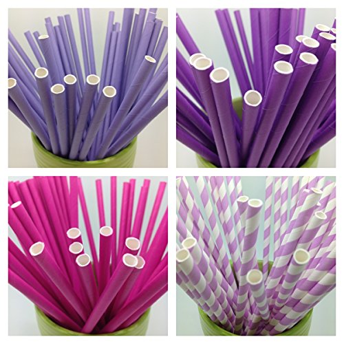 -. Title : 100 Paper Straws Mixed 4 Styles Vintage Paper Straws, Striped, Lavender/Purple