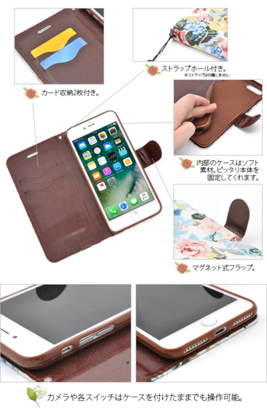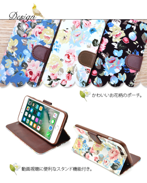 iPhone7 Plus用のエレガントなフラワーポーチケース。