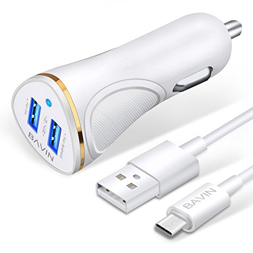 -. Feature : HIGH-SPEED CHARGING WITH SAFETY. Large current processing chip reach Intelligent diffluence and quick charge 3.0 technology provides 4 x faster charging speed, 2.4 A USB port charges up to 2.5 x faster than usual car charger to perfectly work with devices. / Package includes:1x BAVIN Dual Port High Speed USB Car Charger with 3FT USB -C Lightning Cable,perfectly fit for Samsung Galaxy S8, S8 Plus, Note 8, Google Pixel/ XL, Nexus 5X 6P, Moto Z and More. / UNIVERSAL COMPATIBILITY:The car charger has two USB interfaces for IOS and Android, charging more efficient by selecting the charging interface according to your devices. Work fine with iPhone 7 / 6s / 6 / 5 / SE / Plus, Samsung Galaxy S8 / S7 / S6 / Edge / Plus, Note, LG, Nexus, HTC, Moto and more smart phones, tablets and so forth. Allow you to charge two devices while using on the road. / SECURITY ASSURANCE: Build with ABS insulation environmental protective shell and ultrasonic welding technology. 7 heavy security intelligent protections (over-charged, over-overload, over-voltage, over-current and short-circuit, over-heating, etc) to ensure complete protection for you and your devices. / FINE WORKMANSHIP WITH DURABLE MATERIA: Designed with a LED power indicator, manganese steel elastic contact plate and zinc alloy contact. Extraordinary strength body is made up of fire retardant ABS material and heat sealing technology, small and exquisite enough.