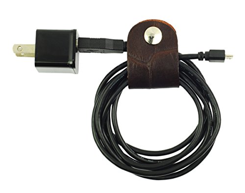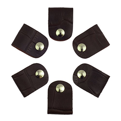 Leather Cord Orangizer Clips Set, 6 Snap Closed Pieces, Brown