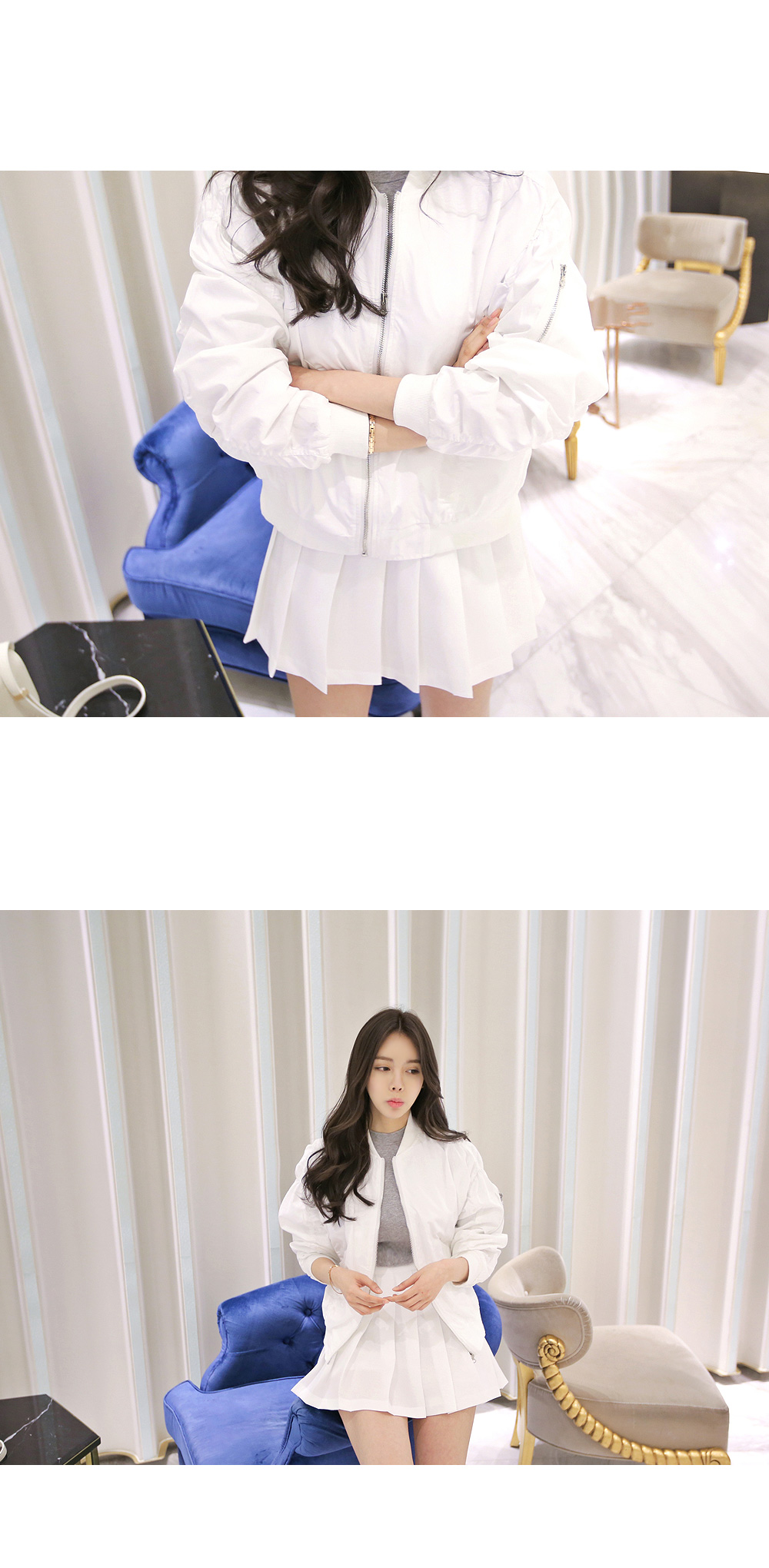 미니멀한 기장감으로 다리라인을 길고 롱하게 보여주어요.