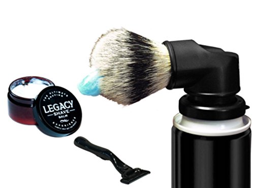 UNIVERSAL GIFT SET: Legacy Shave Evolution Brush, Legacy Shave After Shave Balm and Legacy Shave premium heavy weight 5 blade razor with a trimmer blade and lubricating strip for that ultimate comfort shave