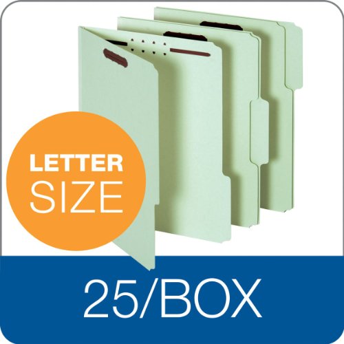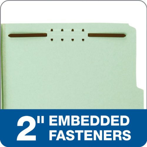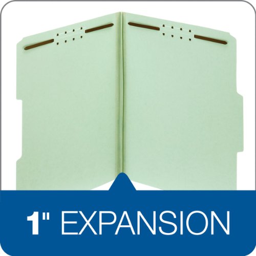 Globe-Weis Pressboard Folders with Fasteners, 1-Inch Expansion, 2-Inch Fasteners, 1/3 Cut Tabs, Letter Size, Green, 25 Folders per Pack (24931GW)