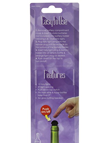 HOW TO USE- Insert fairy light string and battery holder into the top of the bottle, and simply press on the top to turn on