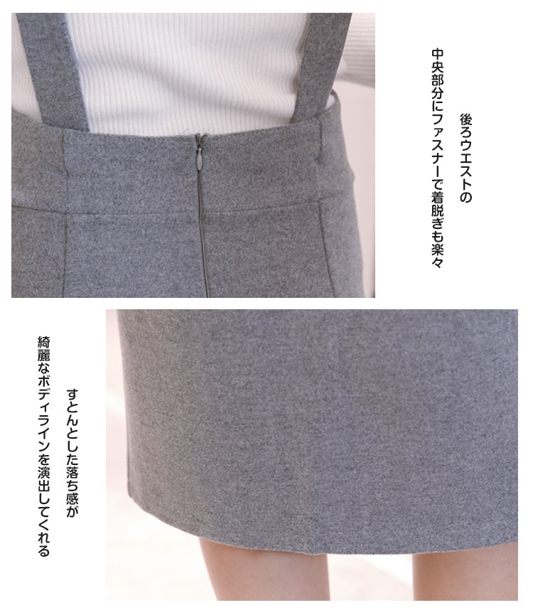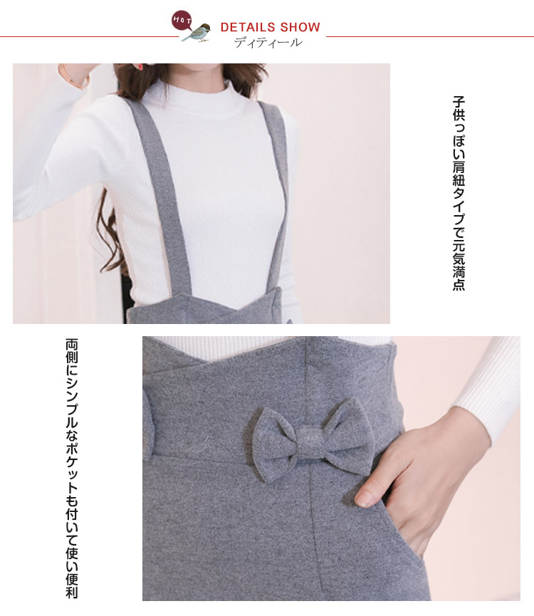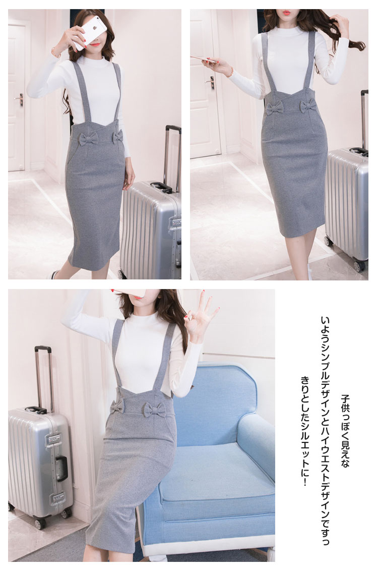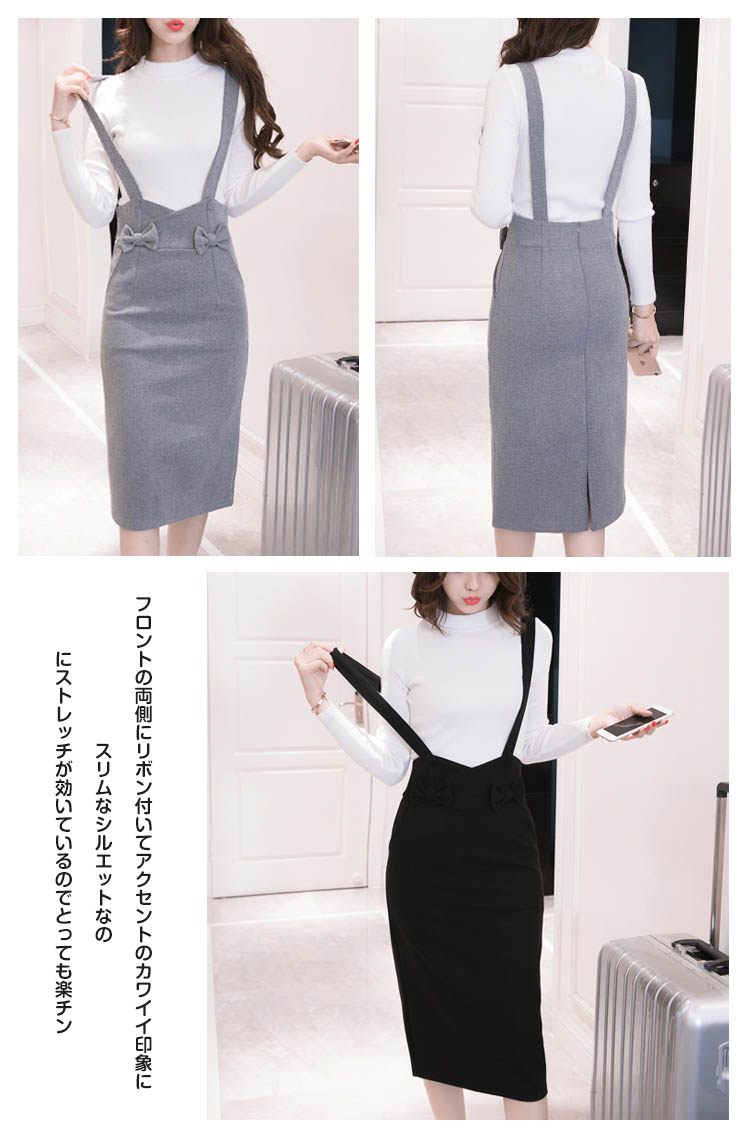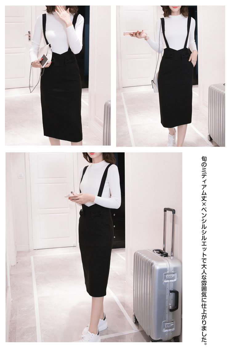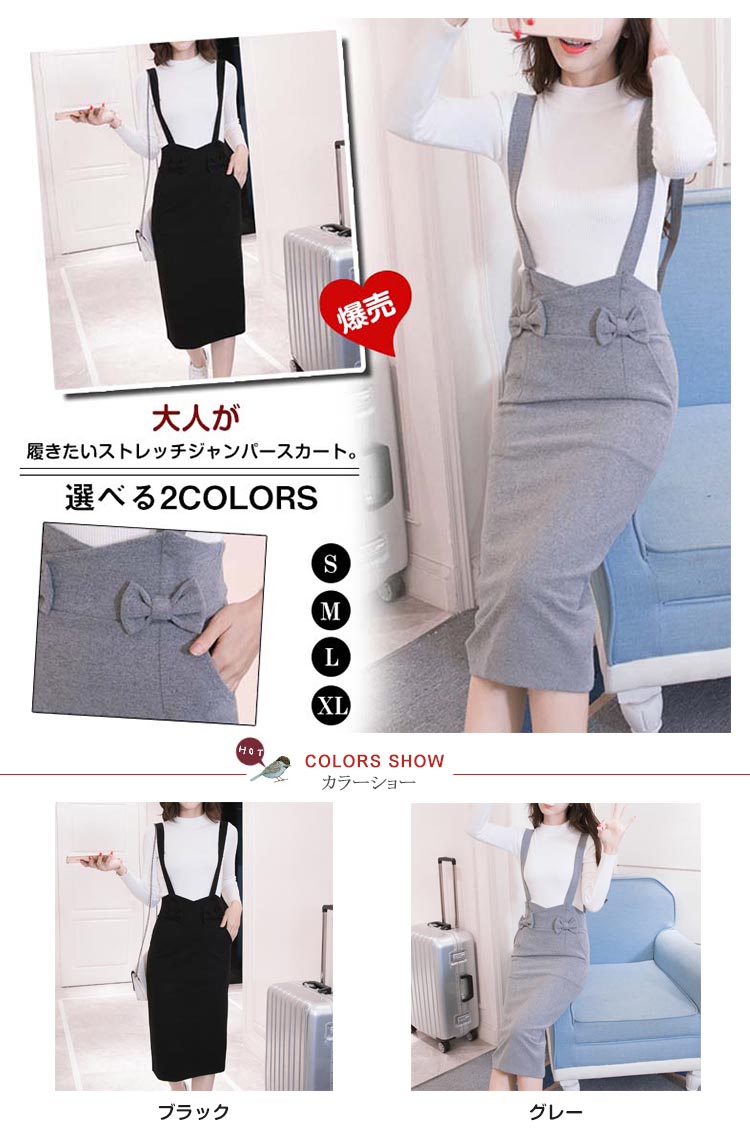 | 大人が履きたいストレッチジャンパースカート。子供っぽく見えないようシンプルデザインとハイウエストデザインですっきりとしたシルエットに!フロントの両側にリボン付いてアクセントのカワイイ印象にスリムなシルエットなのにストレッチが効いているのでとっても楽チン。旬のミディアム丈×ペンシルシルエットで大人な雰囲気に仕上がりました。お手持ちのトップスとも相性よく、ディリーに大活躍してくれること間違いなし。 | |