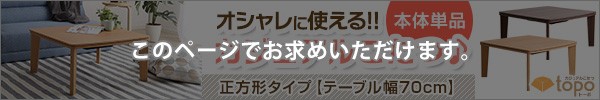 カジュアルこたつ【topo-トーポ-】正方形タイプ(70×70cm幅) ![]() ホワイトカジュアルこたつ【soneca-ソネカ-】正方形タイプ(70×70cm幅)はこちら ![]() カジュアルこたつ【topo-トーポ-】丸型タイプ(直径80cm)はこちら ![]() |
