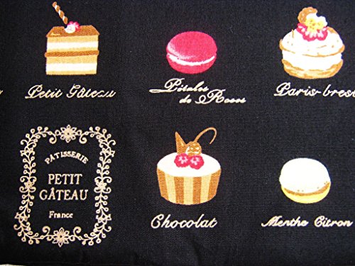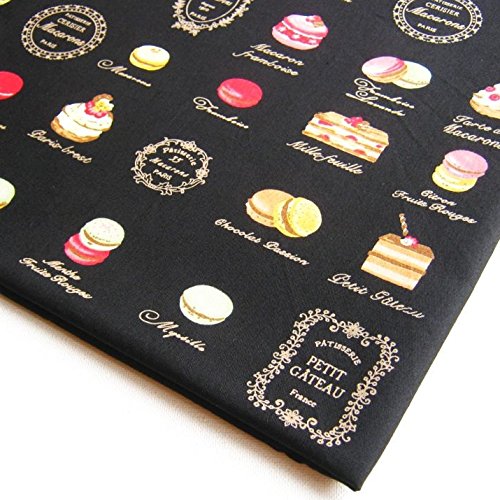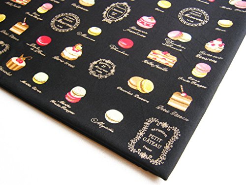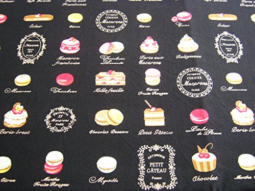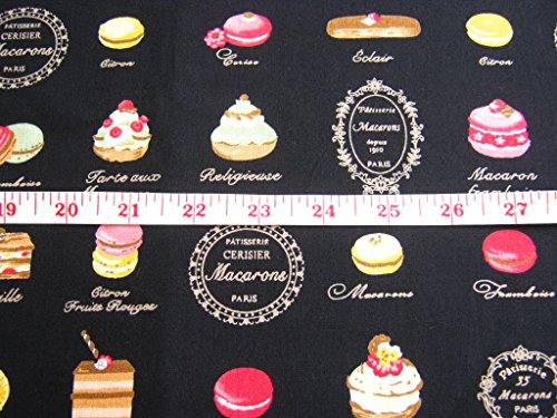 Np Fabric Sweets Macaroon Cake Donut Candy Pie Strawberry Fabric Cotton on Black Fabric 36 by 36-Inch Wide (1 Yard) (CT235)