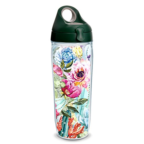 Tervis Succulents And Cactus Wrap Clear Inner Water Bottle with Hunter Green Lid, 24 oz