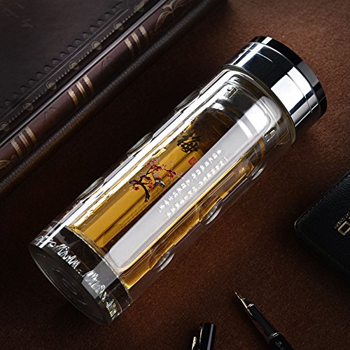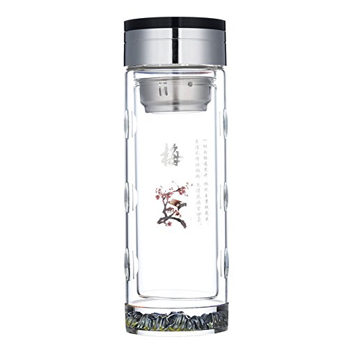 Da Ben Tai-Eco Tea Tumbler, Travel Mug, Glass Water Bottle – Stainless Steel Filter Infuser - Premium Quality - BPA-Free - Travel - For Loose leaf Tea, Teatox, Fruit & Detox (梅)
