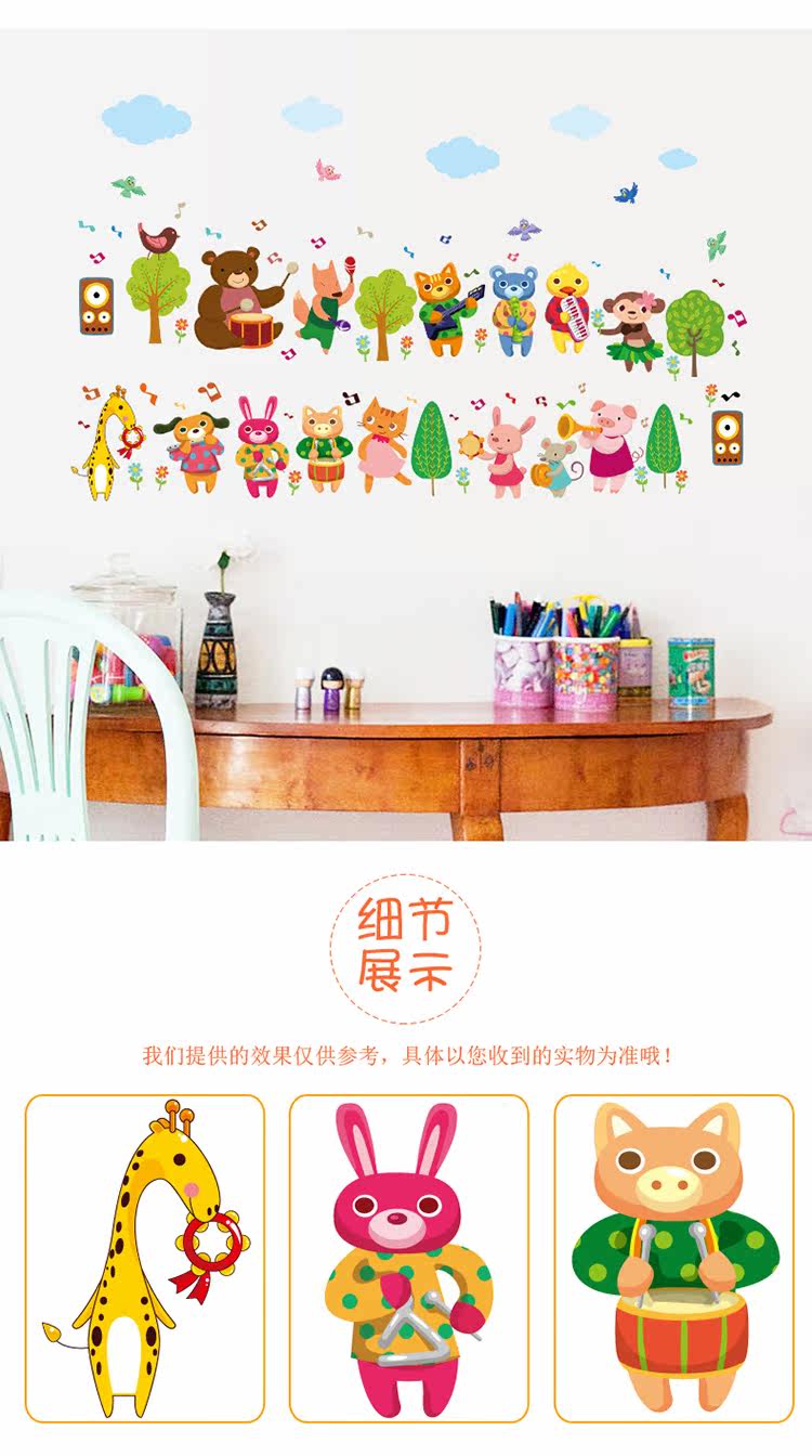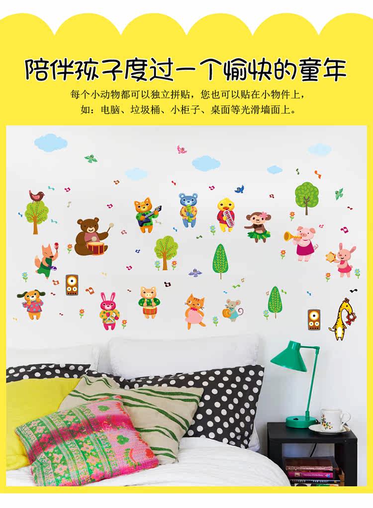 卡通墙贴幼儿园墙面装饰动物乐队踢脚线墙壁贴墙面布置儿童房背景