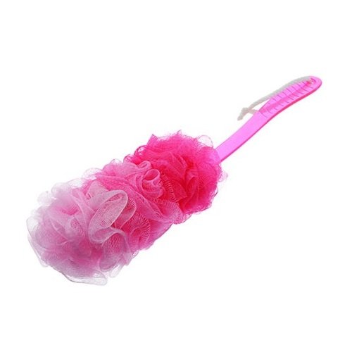 Long Handle Bath/Shower Body & Back Soft-Mesh Loofah Sponge Scrubber (Pink)