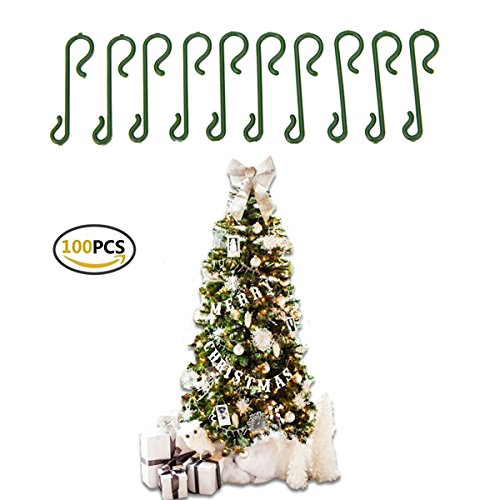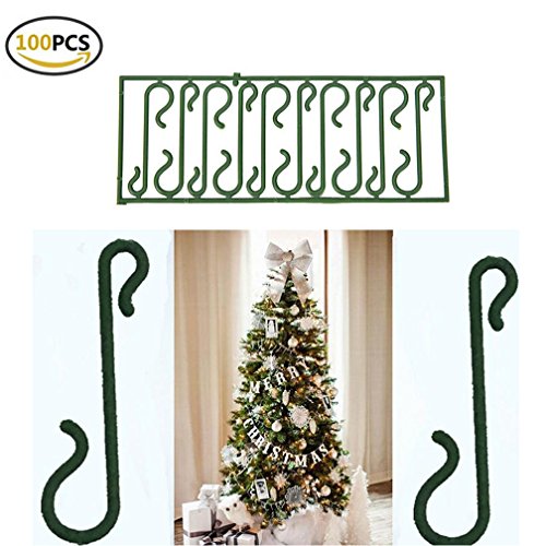 100 Christmas Tree Ornament Baubles Green Hooks Hanging Hangers Decoration Xmas