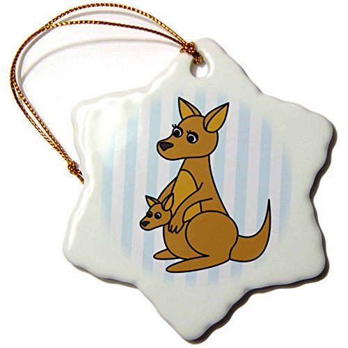 3dRose LLC Mom and Baby Kangaroo Design 3-Inch Snowflake Porcelain Ornament