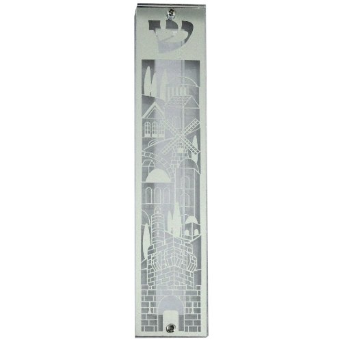 Clear Mezuzah Case With Laser Cut Metal Plate With Jerusalem Design