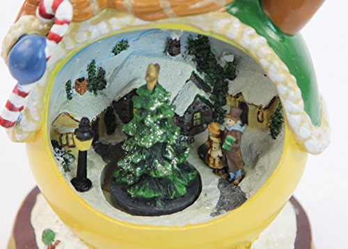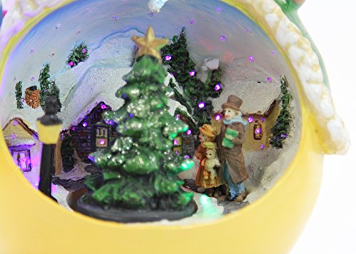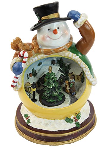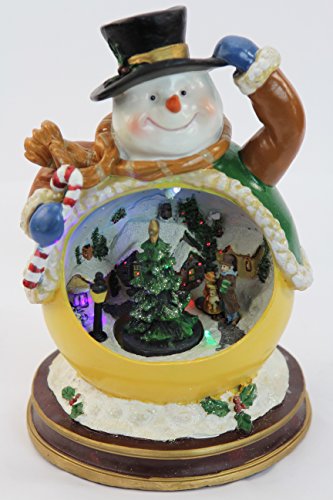 10" H Battery Operated LED Lighted Snowman with Village Scene and Rolling Christmas Tree in Belly