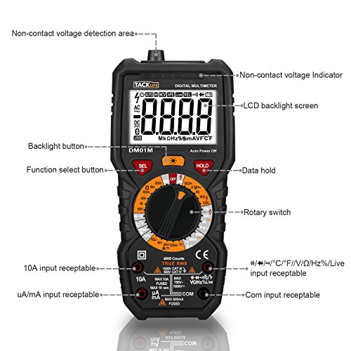 Tacklife DM01M Advanced Digital Multimeter Trms 6000 Counts Tester Non Contact Voltage Detection Amp Ohm Volt Multi Meter Temperature, Live Line, with Lcd Backlit, Black