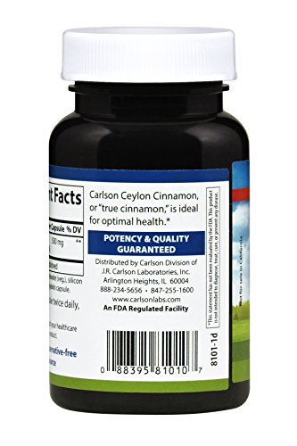 ReleaseDate : 2013-08-19 Studio : Carlson Labs Publisher : Carlson Labs Binding : Health and Beauty Product Description Carlson Labs Ceylon cinnamon helps maintain normal blood glucose levels that are already within a normal range. Contains 500 mg. Cinnamomum verum bark. Also known as true cinnamon. May improve glucose utilization. 0