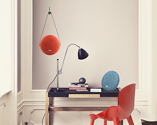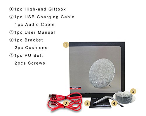- Wireless fabric Bluetooth Speaker With Leather Strap: Novel modern design in superior fabric, to protective layer to avoid slipping, more fashion. speakers with round shape spread high quality crystal clear sound in every direction,360 degree enjoy audio music, also for cafe, restaurant, party, travleling anywhere. fashionable carrying leather strap helps you easier and convenient to carry the speaker.