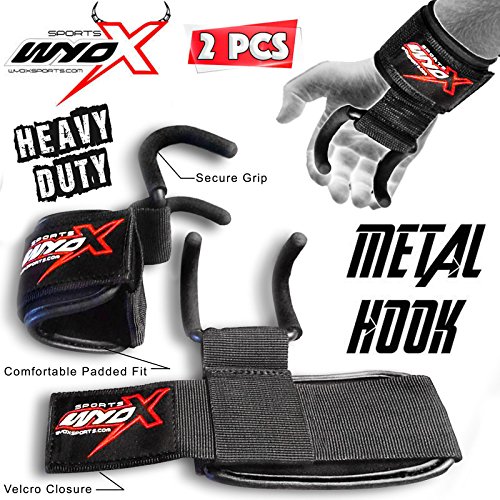 Studio : Wyox Sports Publisher : Wyox Sports Binding : Misc. Product Description Serious weightlifters know they have to continually lift more to grow in strength and size. Wyox Sports Hooks are a great product to isolate your hands from the obvious stresses involved with body building exercises. Whether it be lat pulldowns, chin ups or deadlifts, the Outbak Heavy Duty Liftmaster Hooks will allow you to blast through your strength plateaus. The heavy-duty metal hooks coated with a non-slip material, the wrist supports are made with wide neoprene. The 2" outside strap and durable buckle ensure a secure grip. Padded neoprene wrist strap allow you to hold onto much heavier weights and get more reps. Wyox Sports Hooks are an excellent choice for anybody who is serious about building muscle mass. Customize your fit with the adjustable hook positioning loops. 0