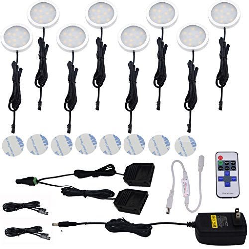 AIBOO Kitchen Under Cabinet Lighting LED 12Vdc 8 Pack Black Cord Aluminum Puck Lights for Counter Closet Furniture Lighting with Dimmable RF Remote Control(16W, Warm white)
