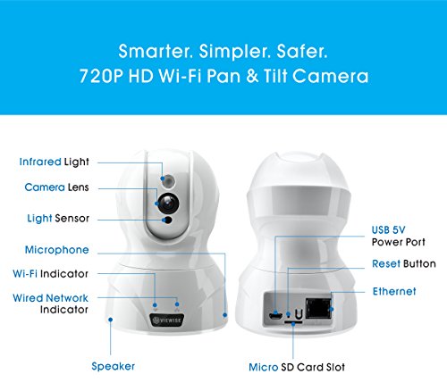 VIEWISE Wireless WiFi IP Security Camera Pet Baby Monitoring Two-Way Audio Built-In Microphone Speaker Night Vision Remote Pan/Tilt Motion Detection 720P HD (2 Pack)