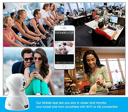 Remote Pan and Tilt, Live Video Streaming & Playback, Smart Motion Alerts (when motions are detected), and Two-Way Audio (built-in microphone and speaker) allow you to monitor your loved ones via smartphone, table, and PC remotely.