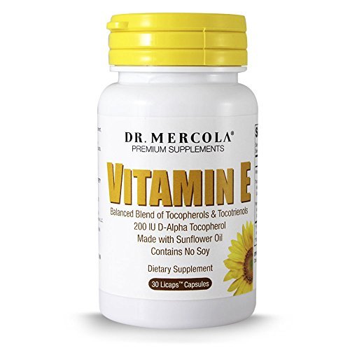 -. Title : Dr. Mercola Vitamin E - Balanced Blend Of Tocopherols And Tocotrienols - Made With Sunflower Oil - Contains No Soy - 200 IU D-Alpha Tocopherol - 30 Capsules