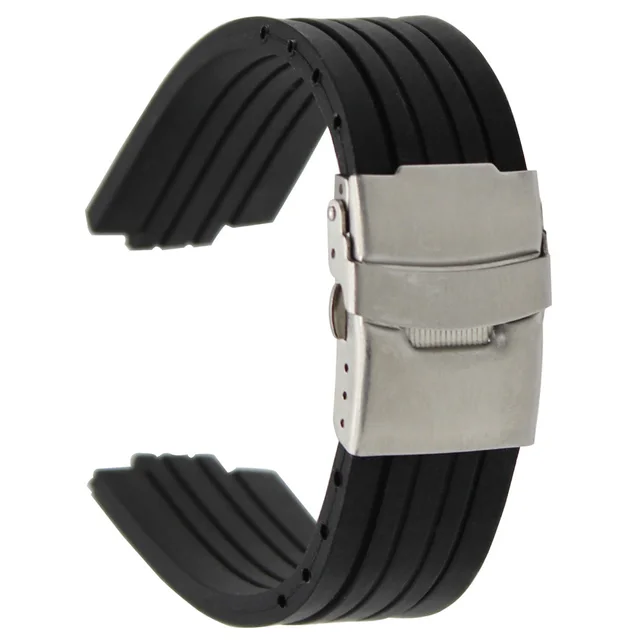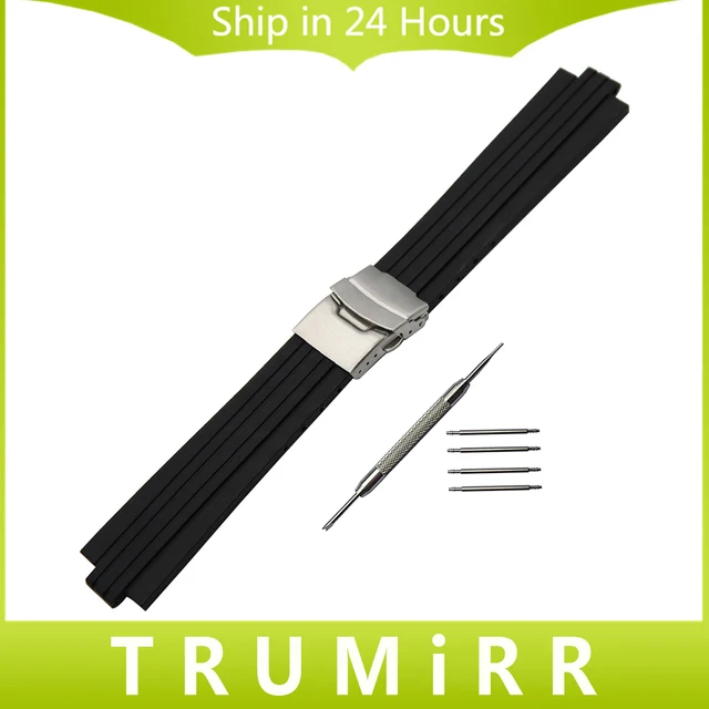 | [해외]22 미리메터 x 12 미리메터 13 미리메터 볼록 입 손목 실리콘 고무 시계 밴드 스테인레스 스틸 안전 버클 스트랩 손목 팔찌 + 도구 |
