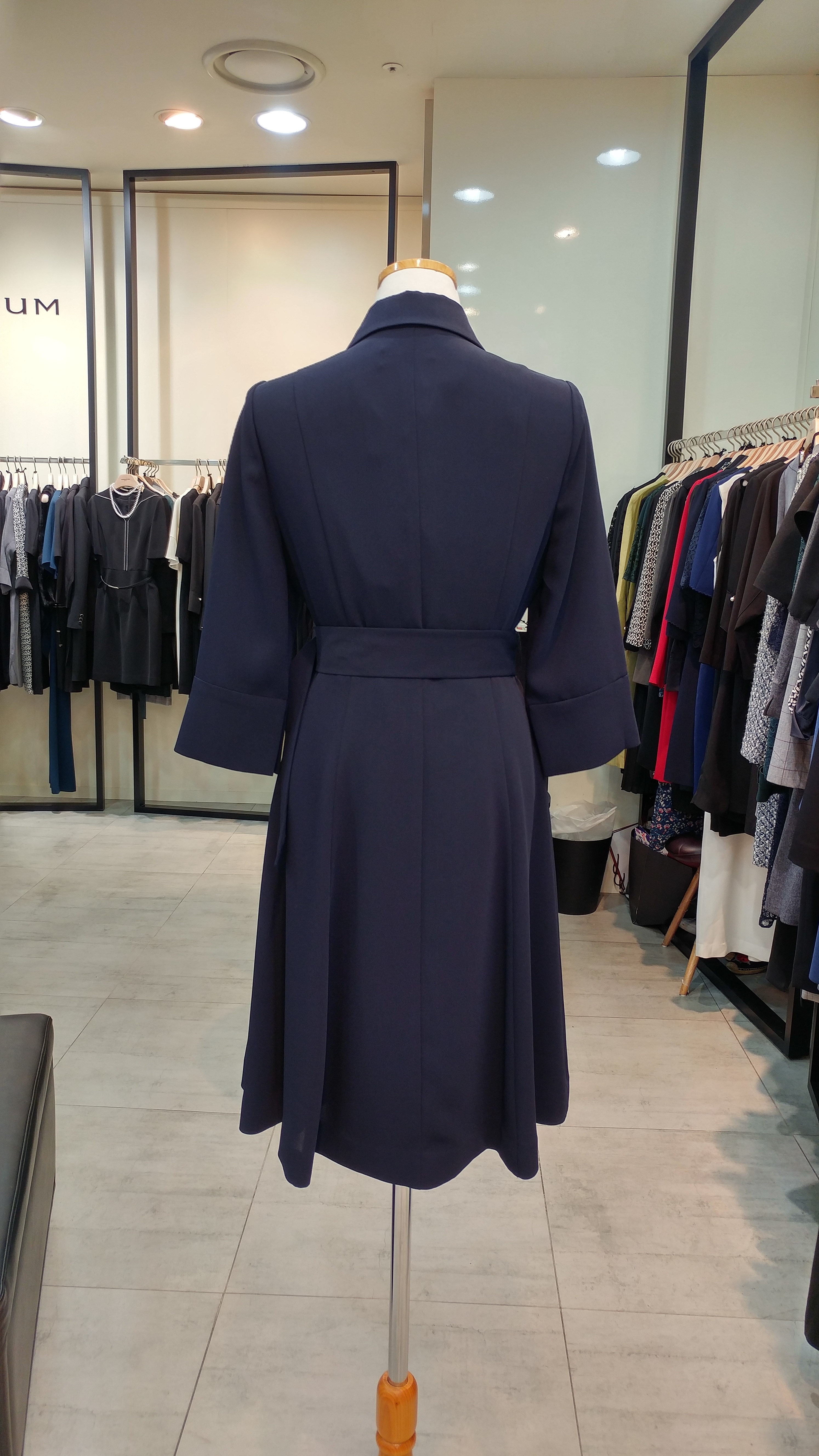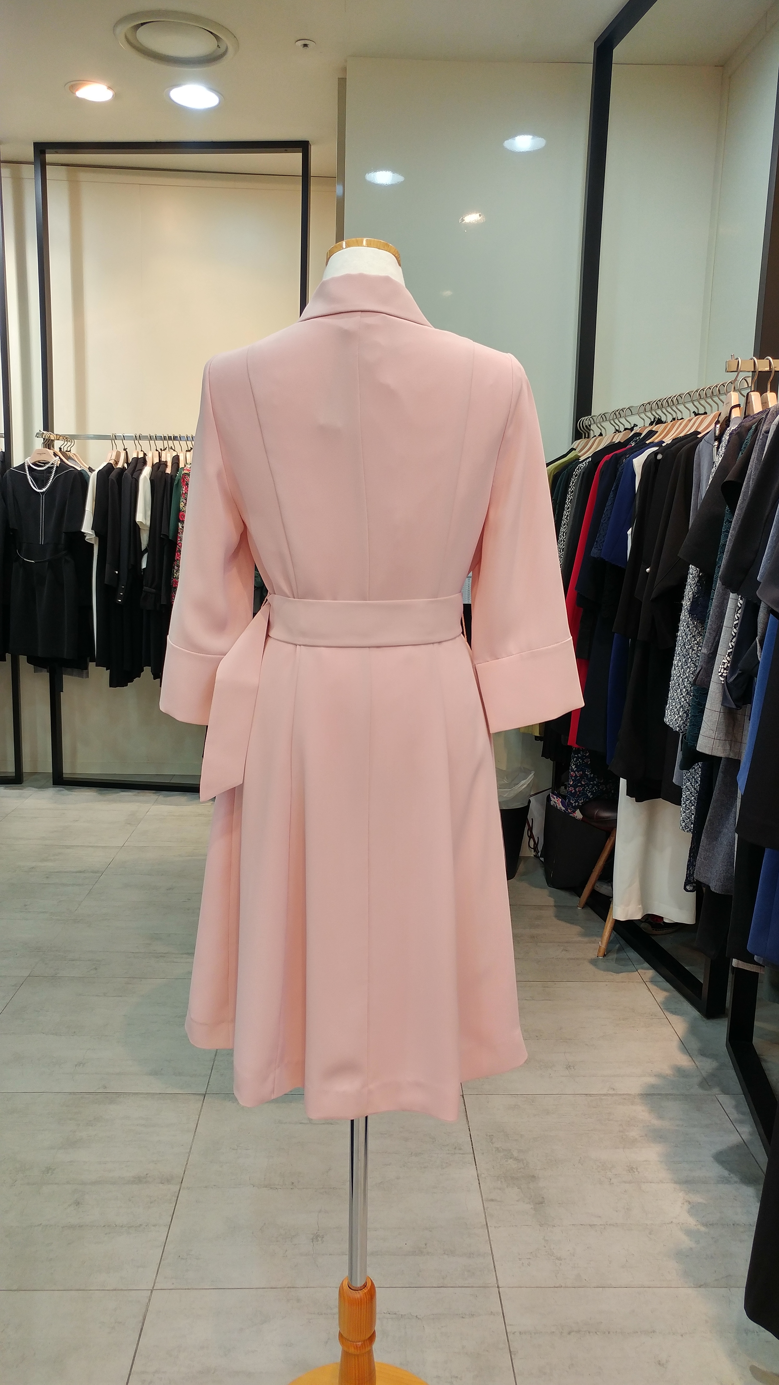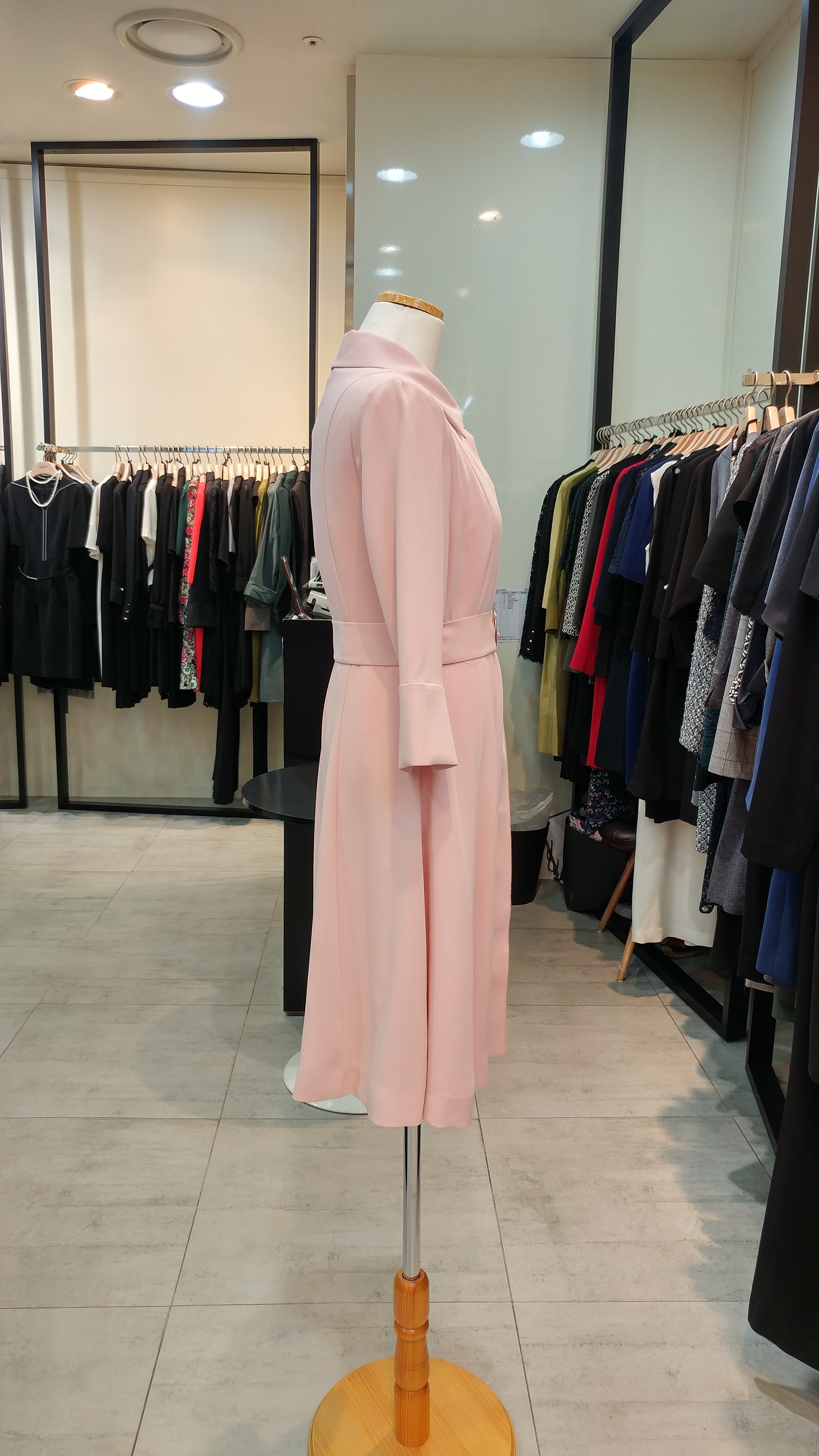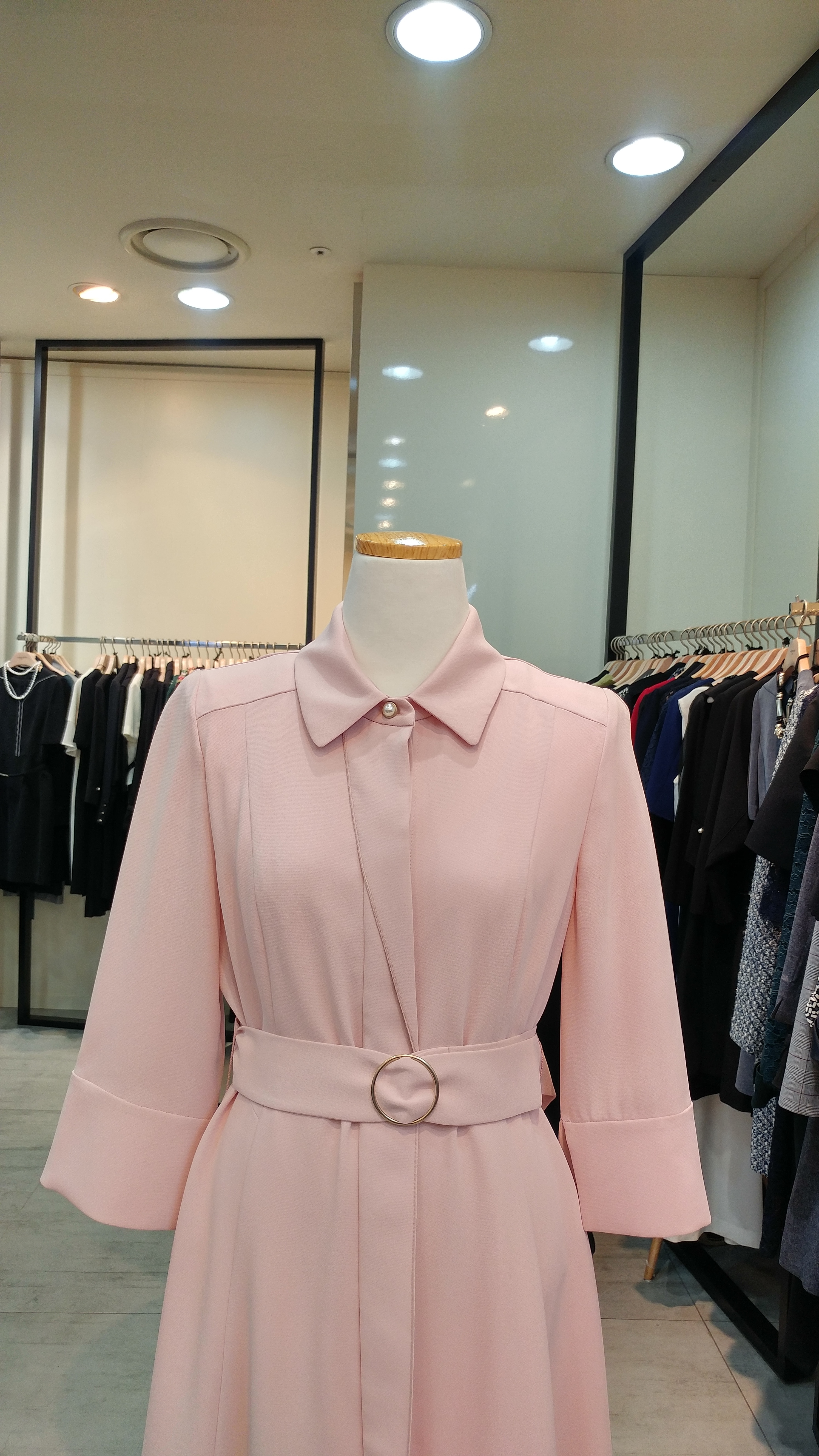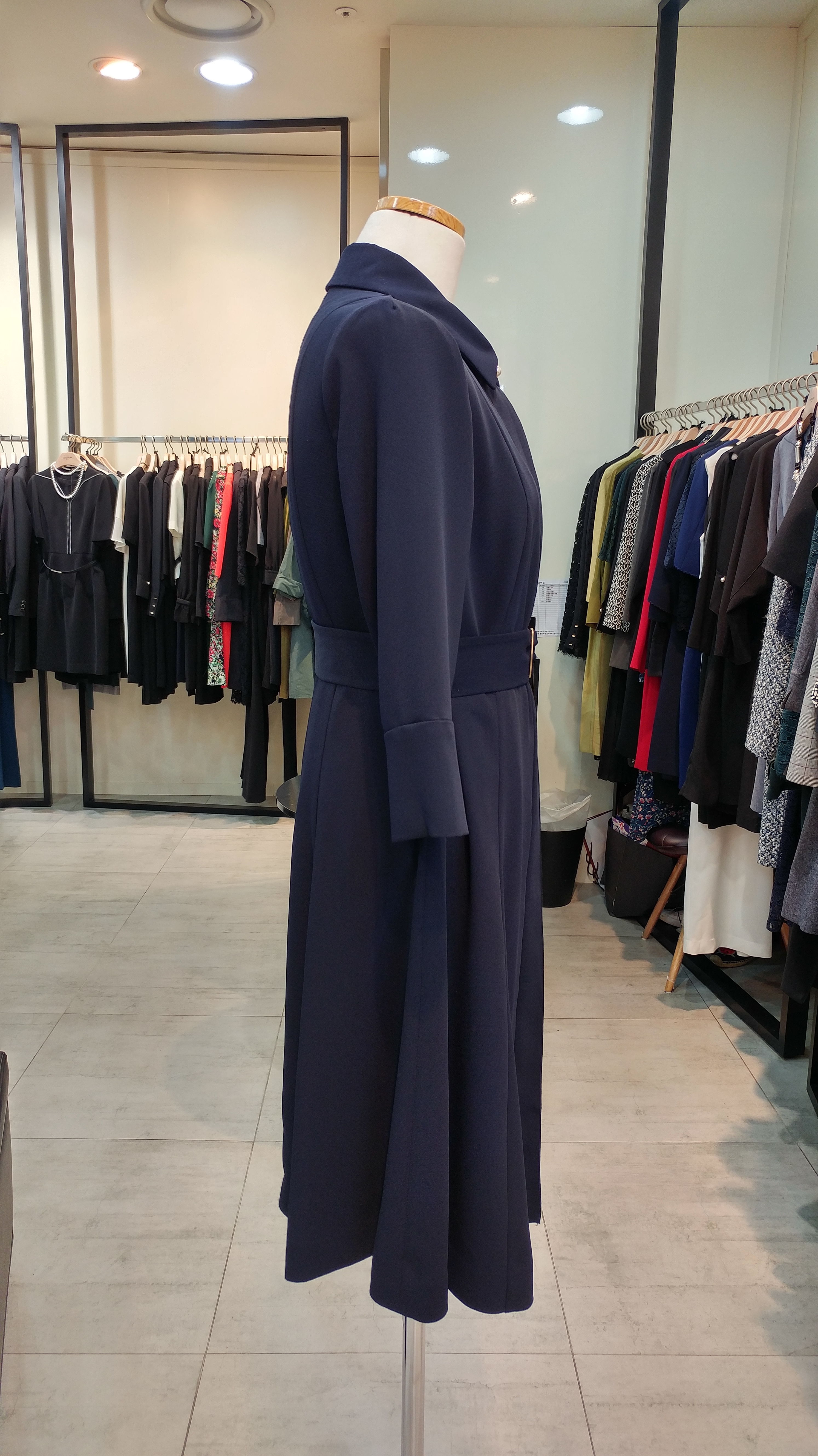 스텐카라A 라인 벨티드 원피스입니다^^  단정  심플하며  고급스러움과 여성스러움 이 돋보이는 스타일^^총장92