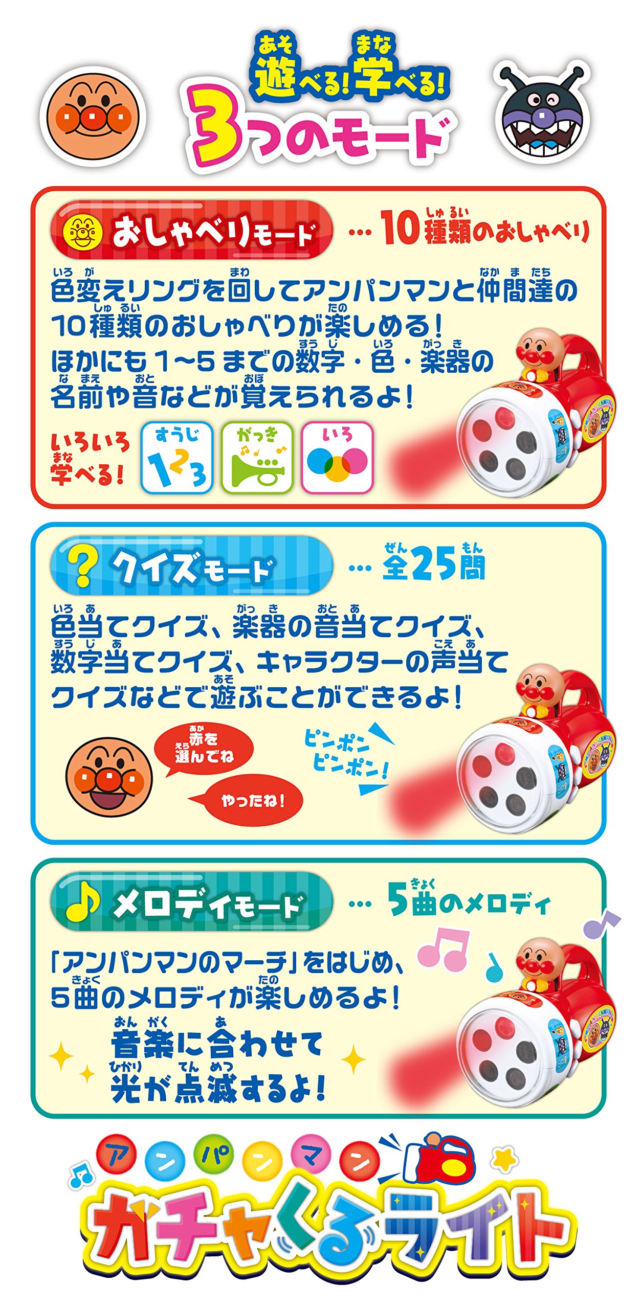 You can enjoy Anpanman, Bibi - nin, Dokin, Melonpanna and Curry Panaman chat (10 kinds).