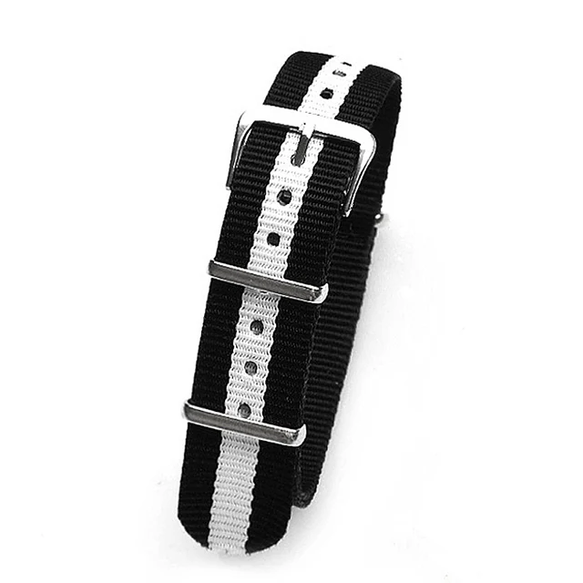 소매 18 미리메터 블랙 화이트 블랙 스포츠 나토 직물 시계 밴드 스트랩 액세서리 밴드 나일론손목 시계 스틸 버클 벨트