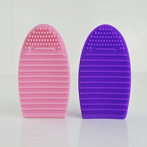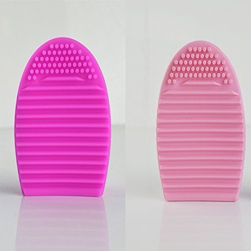 Cleaning MakeUp Washing Brush Silica Glove Scrubber Board Cosmetic Clean Tools Mini Washboard for Makeup Brushes (Pink & Peachy pink)