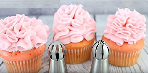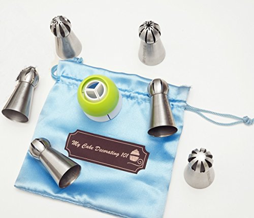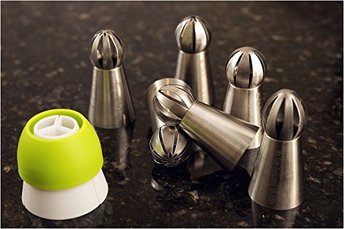 Russian Ball Sphere Piping Nozzles Tips Set 7PCs- With BONUS Coupler - Best With Butter Cream - Icing Tools For Cupcakes And Cake Decorating - Flower Icing Piping Nozzle