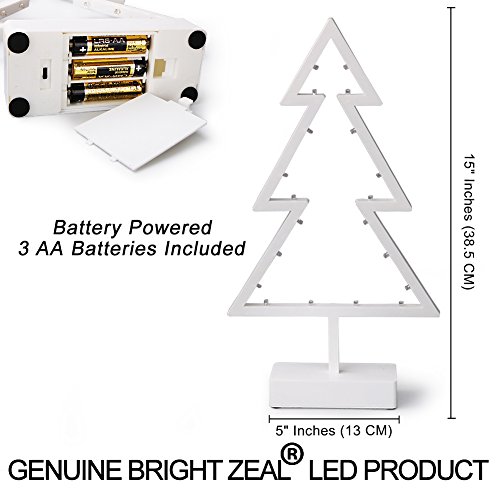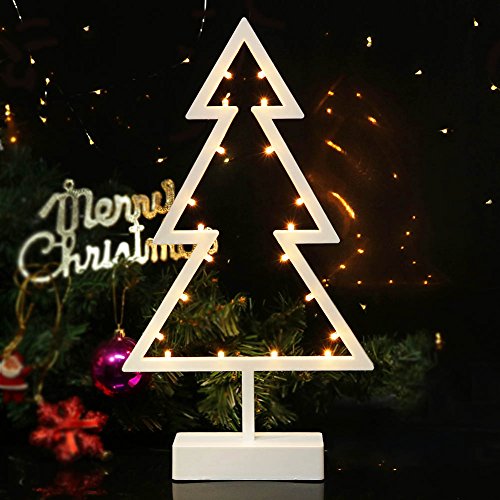 1. White Christmas tree silhouette with an inner edge lined with 20 led blubs giving a pretty festive atmosphere. 2. At night, LED bulbs emit warm white soft glow to form a glistening Christmas tree dressed with twinkling lights. 3. 4 EVA pads on the bottom prevent slip on smooth surfaces for easy decorations. 4. Buy individual as a statement piece or group together to complete your home decorations or special occasion favor.