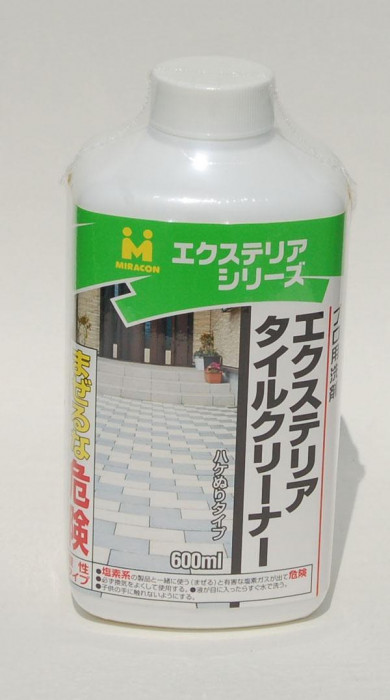 玄関、玄関アプローチ、カーポートなどの屋外、床タイルや外壁タイルの水あか雨水汚れを落します。使い方は簡単、汚れ面に塗布するだけ!汚れに浸透、分解、溶解、剥離、洗浄、除去、化学反応型タイル洗浄剤です。 | |