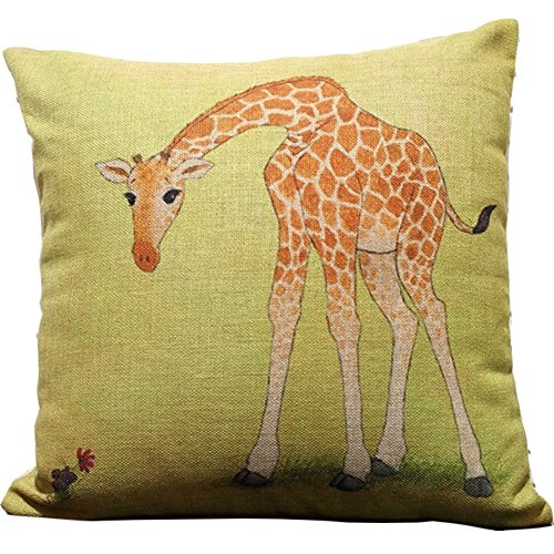 Baby Giraffe Throw Pillow Case Decor Cushion Covers Square 18*18 Inch Beige Cotton Blend Linen by Leaveland