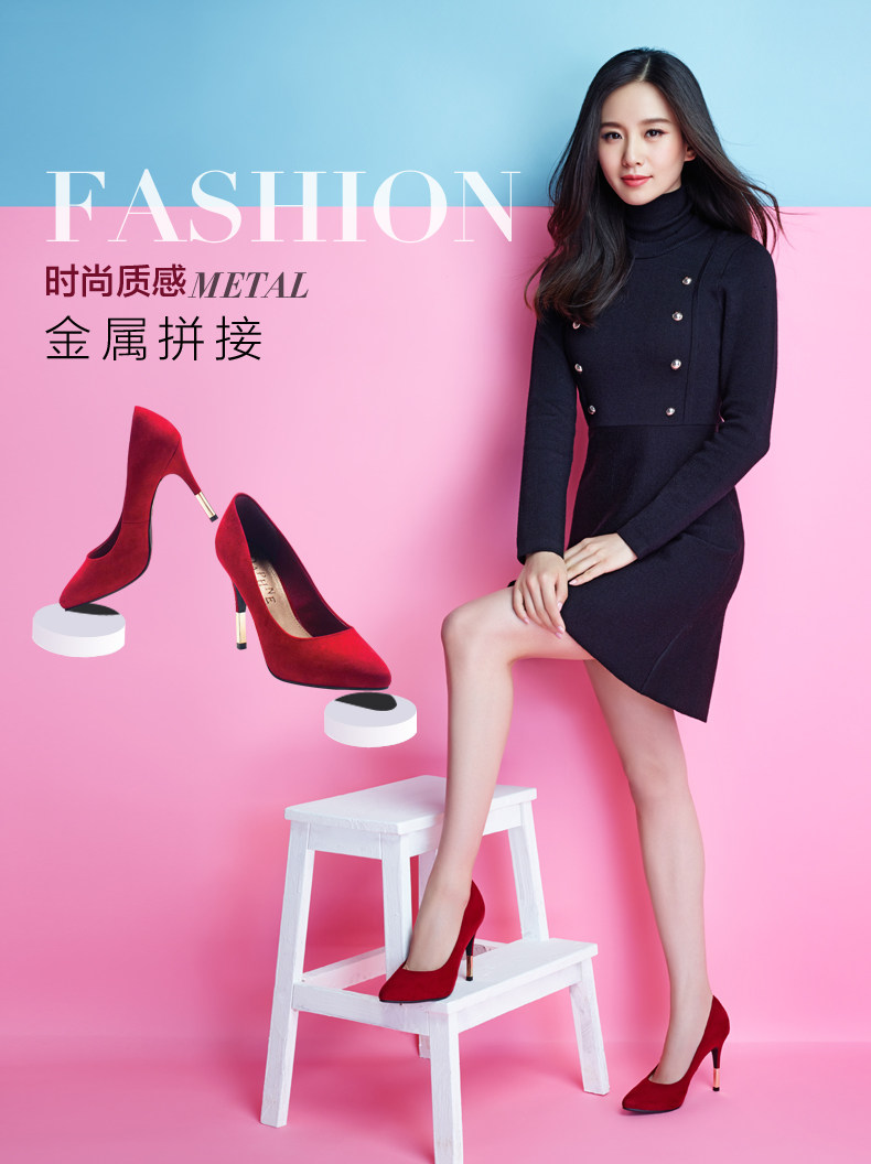 新品 时尚优雅细跟高跟鞋 秋季磨砂女鞋