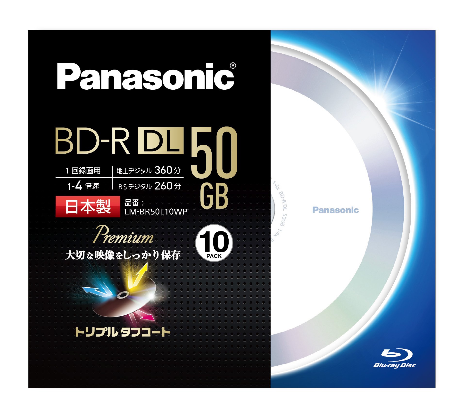 Panasonic video recording for the 4-speed Blu-ray single-sided dual-layer 50GB (write-once) 10 sheets of LM-BR50L10WP