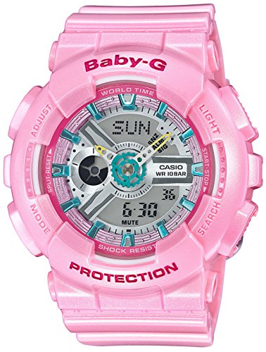 【 BABY-G 】アクティブな女性のためのカジュアルウオッチBABY-Gから、ガーリーとクールを兼ねそろえたモデルが登場。ベースモデルは、メンズライクなデザインが人気のBA-110。甘くなりがちなパステルカラーをケースとバンドに採用しながらも、文字板にメタリックなマルチカラーのパーツデザインを使用することで個性が引き立つカラーリングに仕上がりました。また、ケースとバンドにはパール仕上げを採用し、華やかさを追加。ガーリーなトレンドカラーの中にもクールさを兼ねそろえたBABY-Gです。●耐衝撃構造●10気圧防水機能●ワールドタイム 世界48都市(29タイムゾーン、サマータイム設定機能付き)+UTC(協定世界時)の時刻表示●ストップウオッチ 1/100秒、24時間計、スプリット付き●タイマー セット単位:1分、最大セット:24時間、1秒単位で計測●時刻アラーム5本・時報 アラーム:1本のみスヌーズ機能付き●フルオートカレンダー●12/24時間制表示切替●操作音ON/OFF切替機能●LEDライト 残照機能付き●電池寿命:約2年 / ■精 度:平均月差 ±30秒■ケース/ベゼル材質:樹脂■ガラス:無機ガラス■バンド:樹脂■サイズ:46.3×43.4mm■厚 さ:15.8mm■重 さ:45g■腕周り:125~180mm / 【国内正規品】※時計に組み込まれている電池は動作確認用のモニター用電池です。Feature