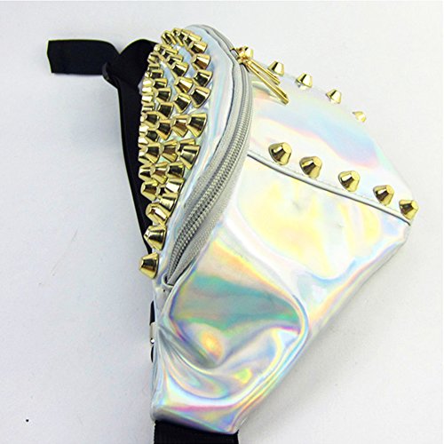-. Feature : Material:Pu Leather / Size:31CM*16CM/12.2Inch * 6.3Inch. / Fashion Hologram Laser Material Embellished With Gold Rivet / The Waist Pack Adjustable Strap / Perfect for Concerts, Barbecues, Festivals and Traveling.
