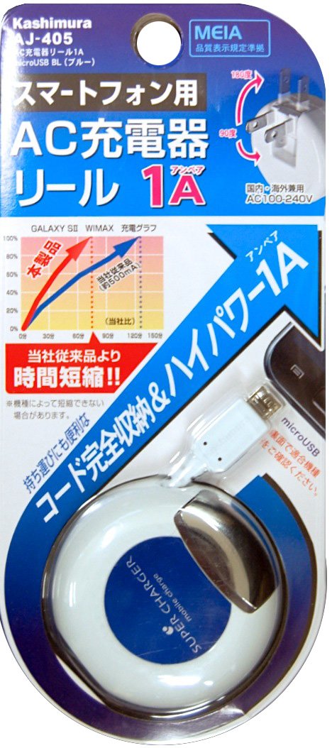 KASHIMURA AC charger reel 1A micro USB black AJ-405