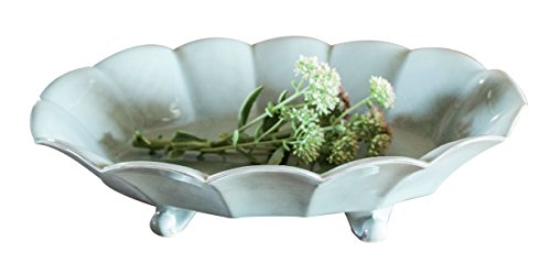 Creative Co-Op Dolomite Footed Pleated Bowl, Aqua