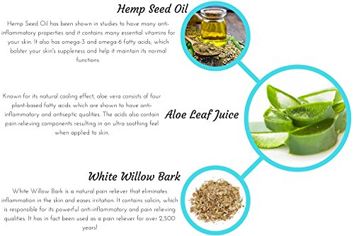 - WHITE WILLOW BARK AND HEMP SEED OIL- What separates our cream from others are these ingredients. White Willow Bark is a natural pain reliever that eliminates inflammation in the skin and eases irritation. Hemp Seed Oil has been shown in studies to have many anti-inflammatory properties and it contains many essential vitamins for your skin. It also has omega-3 and omega-6 fatty acids, which bolster your skin's suppleness and help it maintain its normal functions.