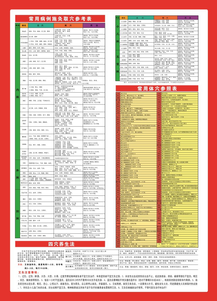 Front is the "standard acupoints map", the back with "moxibustion acupoints reference table", "commonly used body acupoint reference table", "four points health principle" ...
