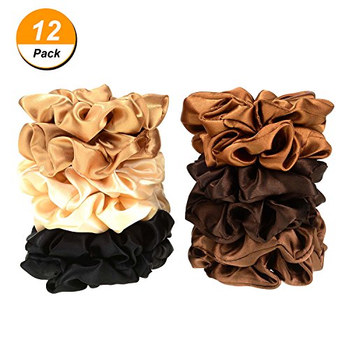 BBTO 12 Pieces Satin Hair Scrunchies Elastic Hair Bobbles Scrunchies Hair Ties for Kids Adults, 6 Colors