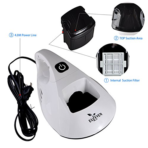 UV Handheld Vacuum Cleaner UV vacuum cleaners: simple to remove those who think it's difficult to remove the hidden dust and mite (dung, die skeleton) This is a new cleaning machine with sterilization (sterilization mode), dust collection (cleaning mode), flap (flap model) and heating material which regular cleaning machine do not have. Recommend you can use this product in these Household items (1)Carpet, Thin Quilts(2)Thick Quilts(3)Mattresses, Bed Cover (4)Pillows, Cushions (5)Sofa Cloth The More Efficient Cleaning Ways (1)Suction: With a Strong suction to clean the dust mites of your quilt, sofa, fabrics, etc, (2)Bateria Killing: UV light is able to kill most of the bacteria.(3)Two Suction Inlets:Operating this vacuum cleaner with a low speed about 10cm/ sec. When it needs being used cleaning the thin rags , stretch the rags at first in order to make it work more perfectly. (4)Via Vibrating: The dust/bacteria hiding deep in the quilt , mat could be absorbed out Specification:AC 120V 60HZ Size: 11.69*7.17*4.88 inch Weight: 3.2lb Power Cord: 157.5inch Dust Chamber Capacity: 160ml UV Bed Vacuum cleaner with vibrating pad Suction Power: 356W Dual Suction entries With UV-C light to kill Bacterial UV-C light Auto shut off function Please using this product in quilts, mattress, bedspread, bedding,pillow, cushion, sofa cloth products and so on When using this product in dyeing (black, dark blue) or shiny material products, UV lamp might benot openFeature