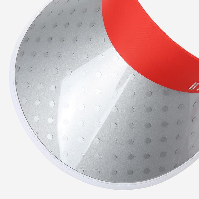 메탈릭한 광택감 바탕에 도트 패턴으로 포인트를 주고 레드 배색으로 세련된 외관을 연출한 모자입니다.