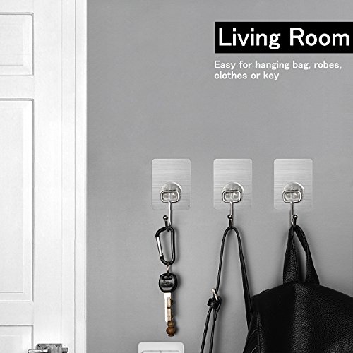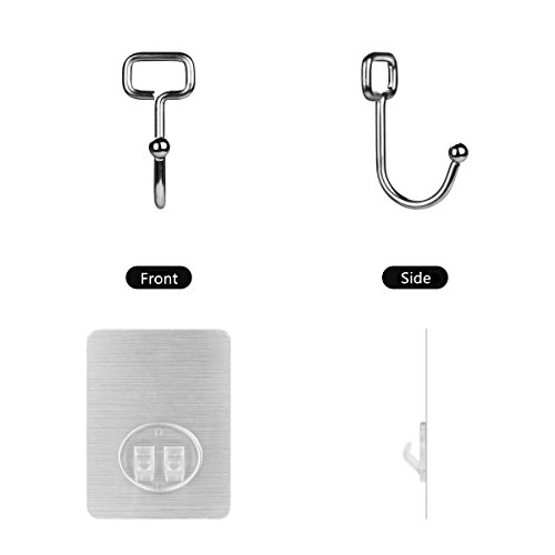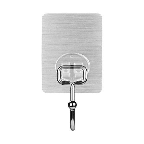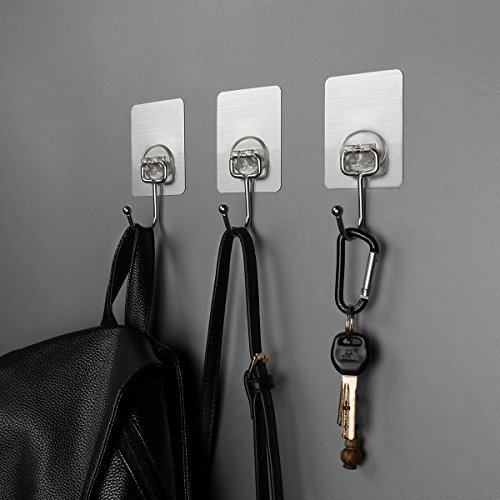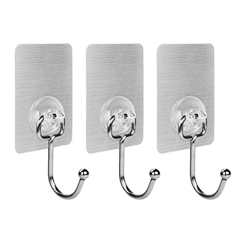 Oneach 17.6lb/8kg(Max) 304 Stainless Steel Traceless Polished Finish Adhesive Hooks Reusable Heavy Duty Wall Towel Hook No Scratch ,Waterproof and Oilproof, for Bathroom Kitchen Ceiling Hanger (3 PCS)